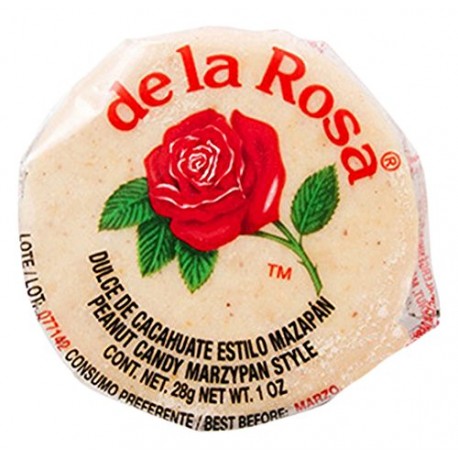De la Rosas Mexican peanut Candy allows you to go back to our ancient traditions and feel the tempting aromas and sounds of the luscious cacahuates being crushed and grounded until the creamiest textures remain. De la Rosa Peanut Mazapan Candy 30 package 1899.