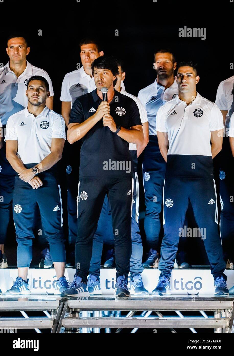 The Head Coach Of Paraguayan Soccer Team Club Olimpia Argentinian Daniel Garnero Front Speaks During The Introduction Of The Official Squad For 2020 Competitions At Manuel Ferreira Stadium In Asuncion Paraguay 14